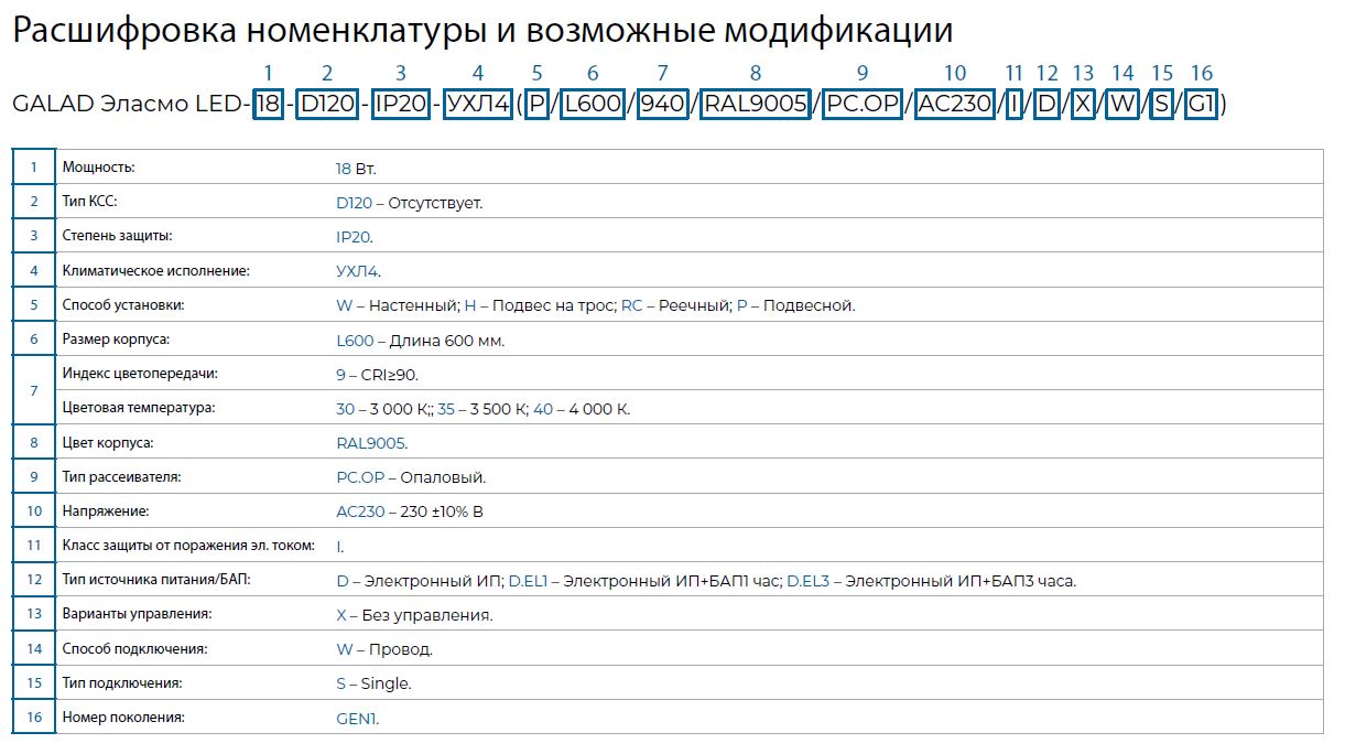 GALAD Эласмо LED-18-D120-IP20-УХЛ4 (P/L600/935/RAL9005/PC.OP/AC230/I/D/X/W/S/G1)
