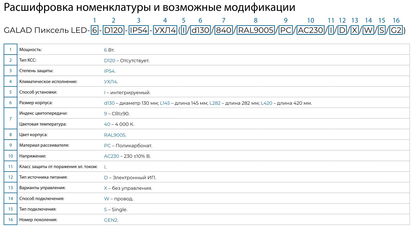 GALAD Пиксель LED-6-D120-IP54/20-УХЛ4 (I/D130/930/RAL9016/PC.OP/AC230/I/D/X/W/S/G2)