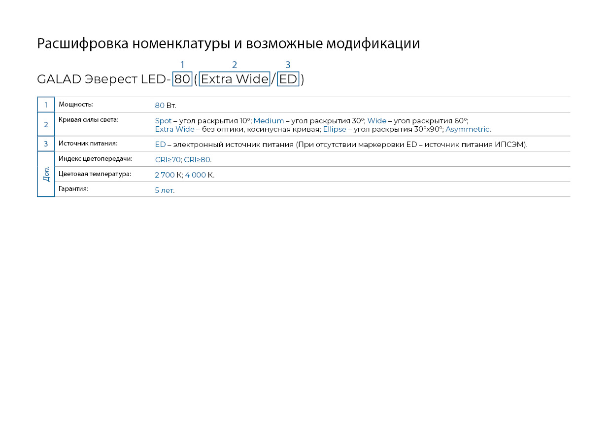 Более 60 модификаций по мощности и КСС
