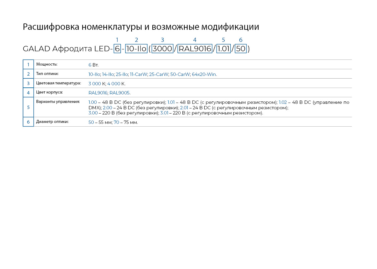 GALAD Афродита LED-6-50-CarW (3000/RAL9016/1.01/50)