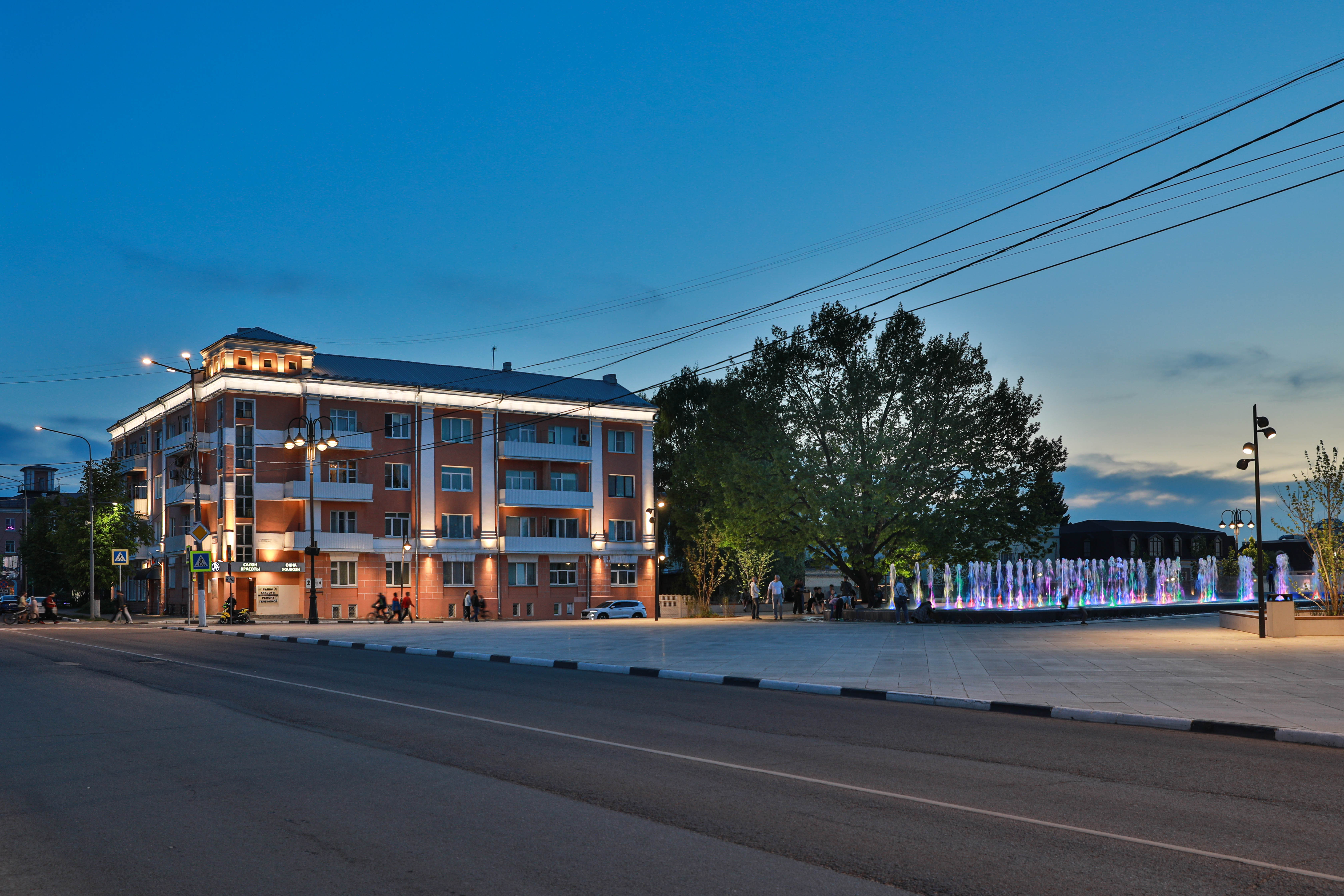 Архитектурное освещение фасадов зданий и сооружений, исторических объектов, памятников, достопримечательностей: заливающее, акцентное.