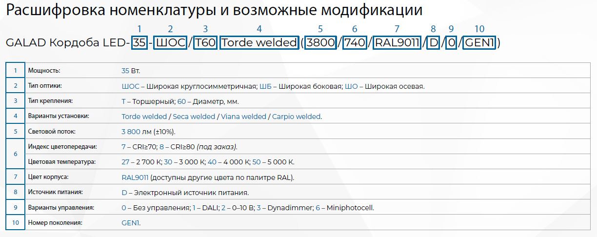 GALAD Кордоба LED-35-ШОС/Т60 Torde Welded (3800/740/RAL9011/D/0/GEN1)