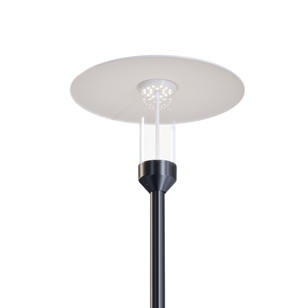 Плафон из прозрачного или матового светостабилизированного поликарбоната. Высота защитного плафона на выбор: 115, 230, 350 или 480 мм. За счёт светодиодного модуля в верхней части на матовом рассеивателе создаётся эффект мягкого градиента