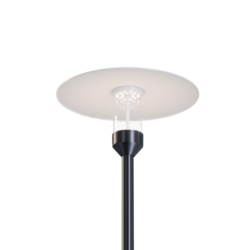 Плафон из прозрачного или матового светостабилизированного поликарбоната. Высота защитного плафона на выбор: 115, 230, 350 или 480 мм. За счёт светодиодного модуля в верхней части на матовом рассеивателе создаётся эффект мягкого градиента