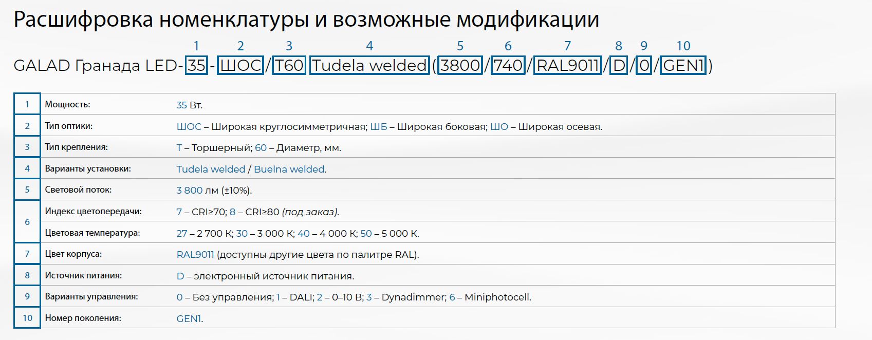 GALAD Гранада LED-35-ШОС/Т60 Tudela Welded (3800/740/RAL9011/D/0/GEN1)