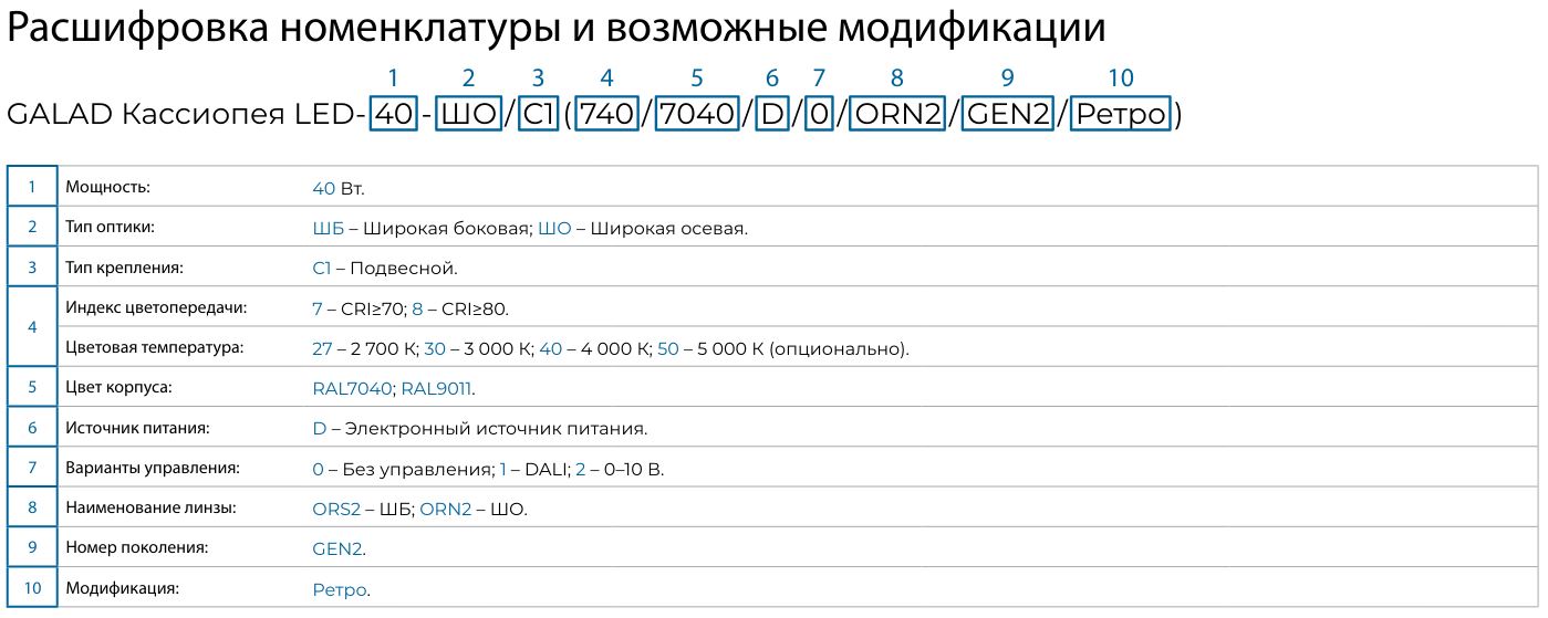GALAD Кассиопея LED-40-ШОС/С1(740/RAL9011/D/0/OP2/GEN2/Ретро)
