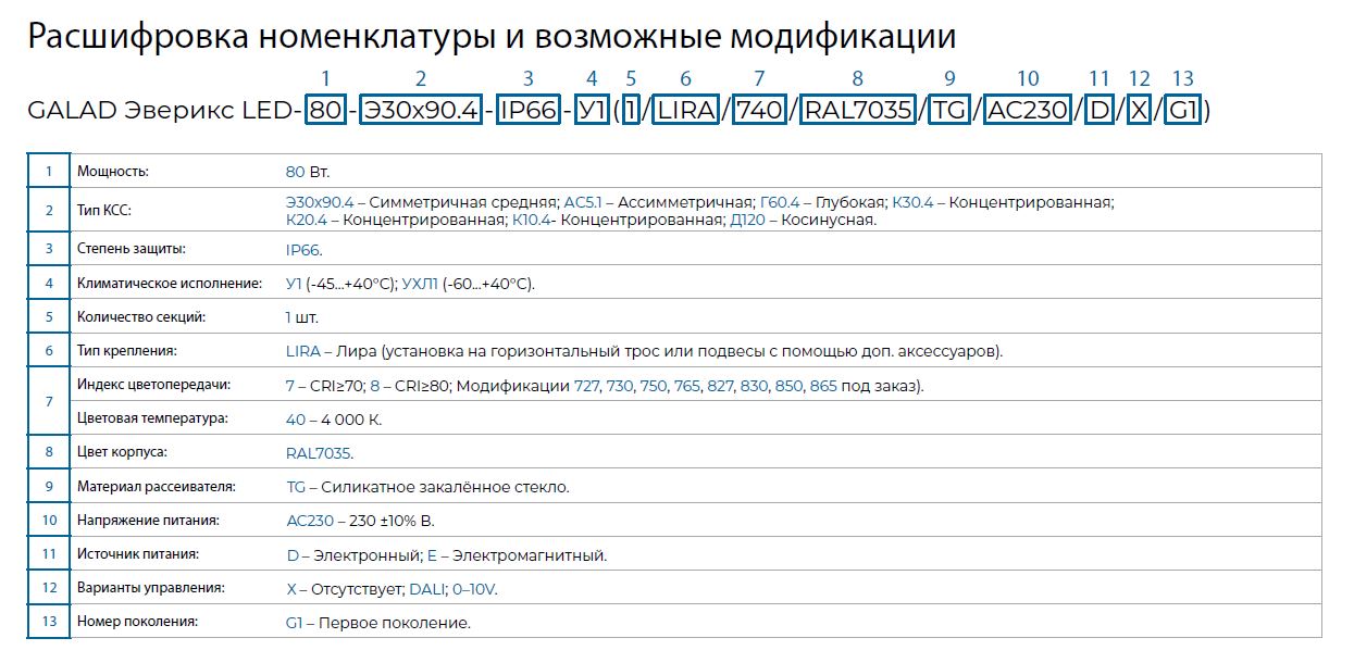 GALAD Эверикс LED-80-К30.4-IP66-УХЛ1(1/LIRA/740/RAL7035/TG/AC230/E/Х/G1)