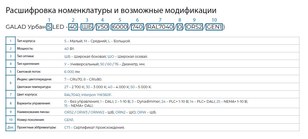 GALAD Урбан S LED-40-ШО/У50 (6000/740/RAL7040/0/ORN2/GEN1)