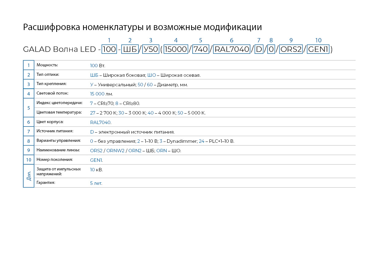 GALAD Волна LED-100-ШО/У50 (15000/740/RAL7040/D/0/ORN2/GEN1)