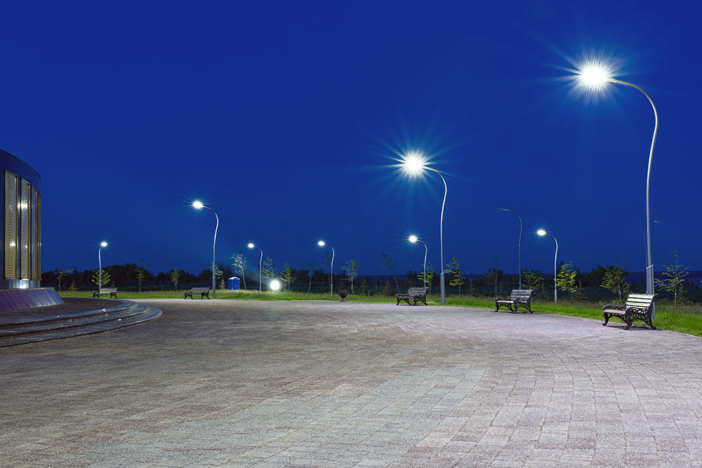 Освещение городских улиц, дорог шириной от 2 до 6 полос, мостов, прилегающих территорий школ, детских садов, торговых центров, площадей, коттеджных посёлков.