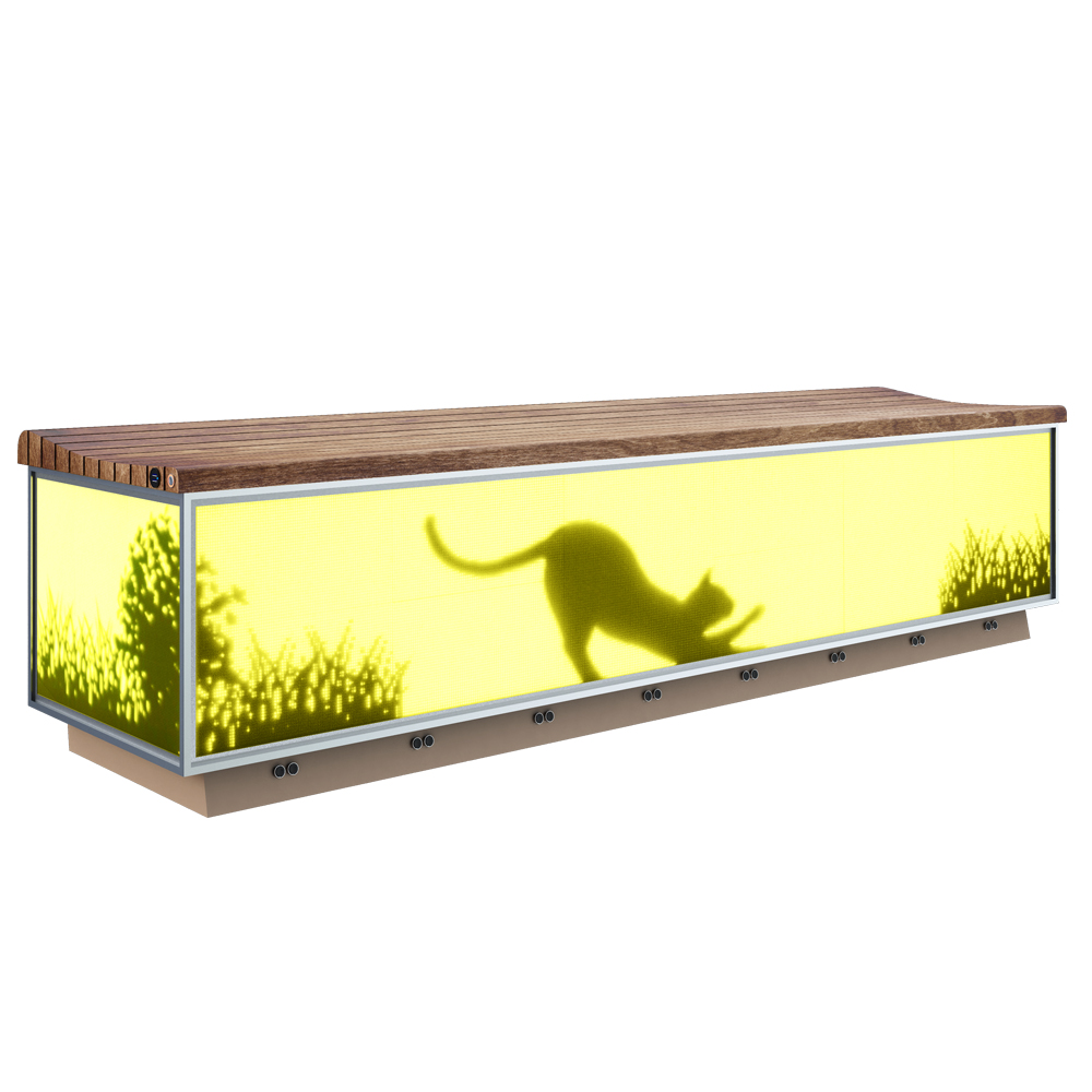 Панели, встроенные в сидение или в торцы лавочки, могут транслировать рекламу, интересные факты, абстрактную анимацию, а также простые игры