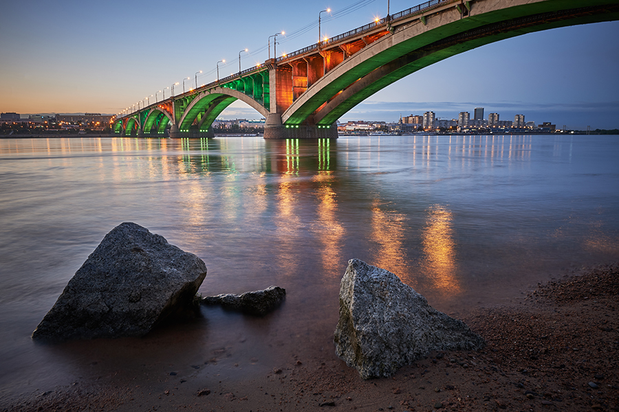 Специфику проекта определили 3 его уникальные особенности. Во-первых, предстояло собрать в единый художественный образ 3 элемента проекта: отрезок моста над основным руслом Енисея, отрезок моста над Абаканской протокой и путепровод на острове Отдыха. Помимо традиционных деталей подобных проектов — светораспределения, уровней освещённости и яркости, а также других светотехнических параметров — были учтены и нестандартные нюансы. Например, влияние на игру света и воды того факта, что течение в основном русле Енисея обычно сильнее, чем в Абаканской протоке.