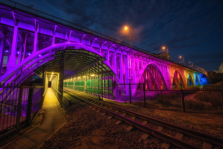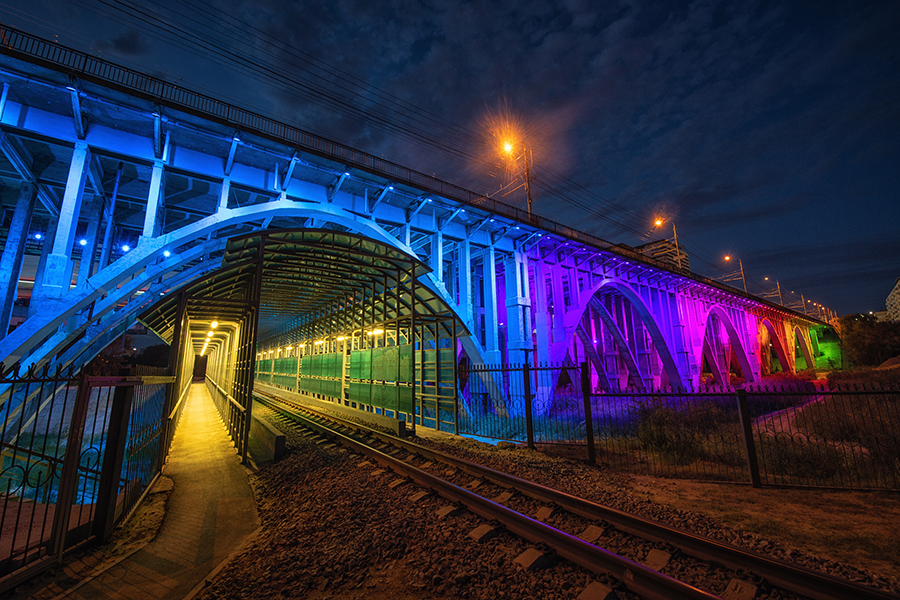 Проект создания системы архитектурного освещения Астраханского моста в Волгограде был реализован в формате полного цикла работ компаниями, входящими в состав МСК «БЛ ГРУПП». «СветоПроект» разработал концепцию освещения и проектно-сметную документацию, а также создал 5 цветодинамических DMX сценариев, согласно которым мост окрашивается в разные цвета. «Светосервис-ТелеМеханика» воплотил эти сценарии в жизнь с помощью программно-аппаратного комплекса. А для архитектурного освещения использованы светильники торговой марки GALAD «Аврора LED RGBW».