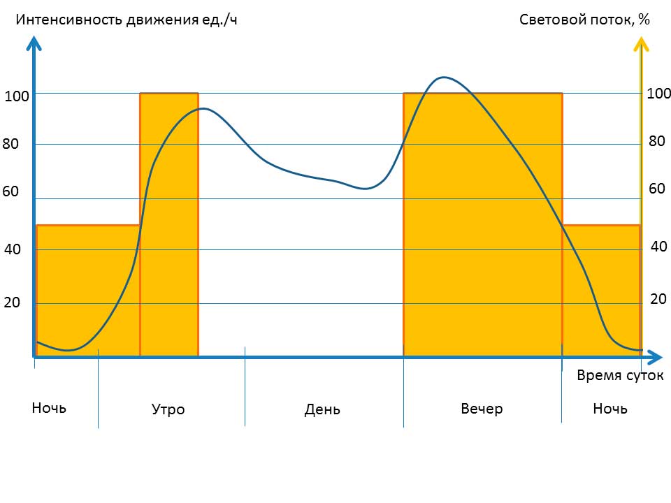 - расписание, которое определяет снижение светового потока и потребления электроэнергии в вечерние и ночные часы;