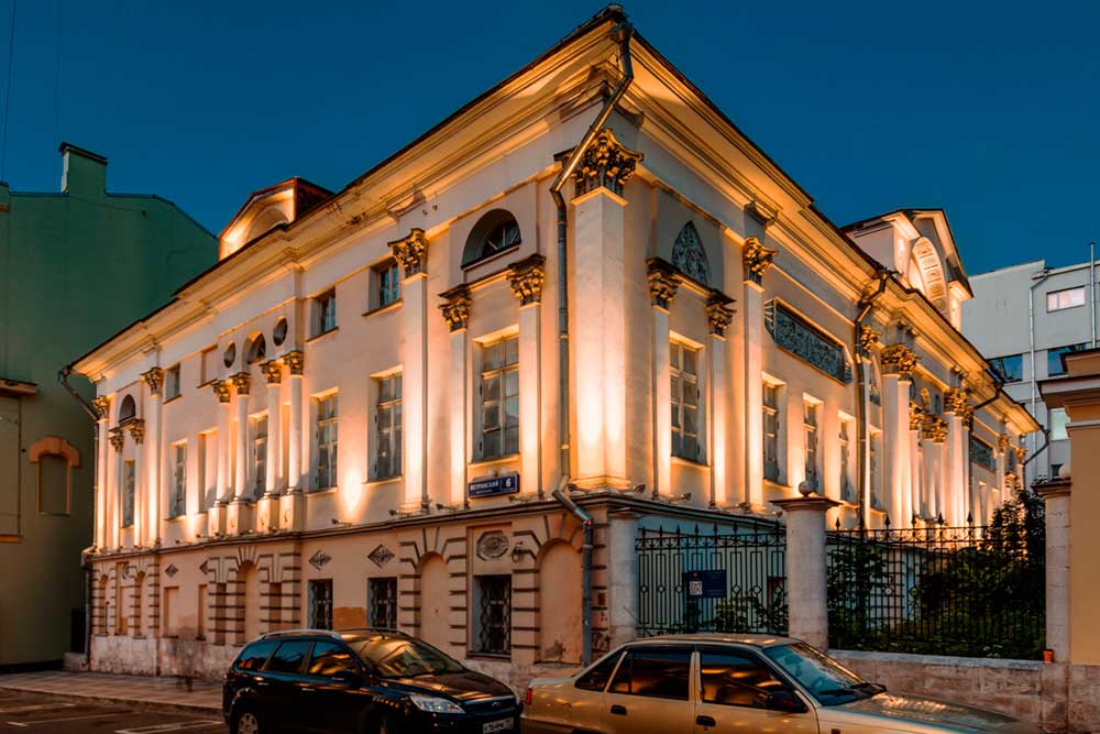 Рисунок 9. Пример реализации архитектурной подсветки здания в Петровском переулке, Москва.