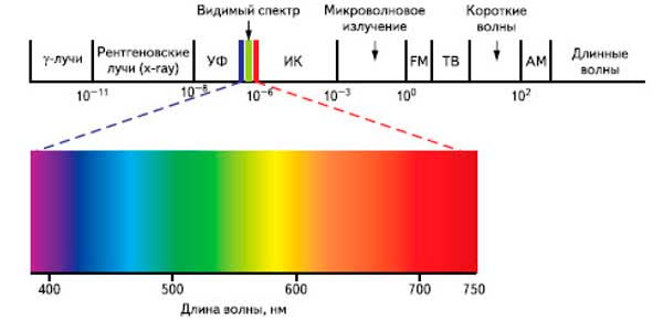 Видимый свет, который человек воспринимает глазом, это электромагнитное излучение в диапазоне от 380 до 760 нм. Излучение с длиной волны короче, чем 380 нм – ультрафиолетовое (УФ), с длиной волны больше, чем 760 нм – инфракрасное (ИК). Такое излучение человек увидеть не может, но может ощутить его воздействие иначе: инфракрасные лучи мы ощущаем как тепло, а ультрафиолетовые делают нашу кожу загорелой.