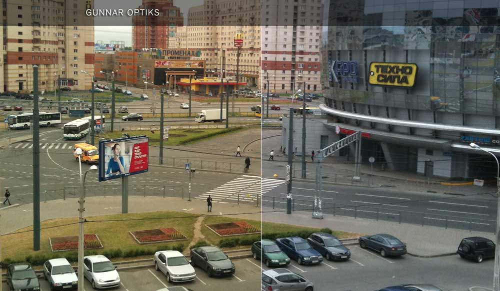 Рисунок 10. Работа фильтра, повышающего контрастность. Слева – через очки с фильтрующим покрытием, справа – без очков.