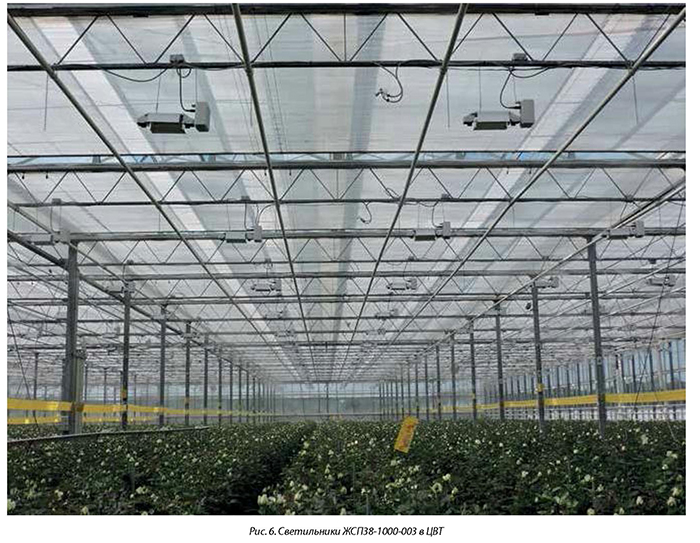 В отечественных цветочных теплицах, в основном, используются светильники мощностью 600 Вт с электронными и электромагнитными пуско-регулирующими аппаратами (ПРА) отечественного и зарубежного производства. В старых теплицах можно ещё встретить светильники мощностью 400 Вт, в трех комбинатахуже используются светильники мощностью 1000 Вт.