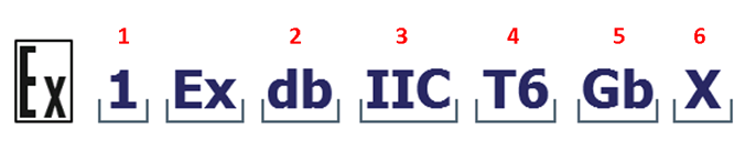 Этот маркер используется только для взрывозащищенного оборудования II и III группы и обозначает наибольшую допустимую температуру поверхности прибора. Чем выше температурный класс, тем меньше нагревается оборудование. Всего их шесть: